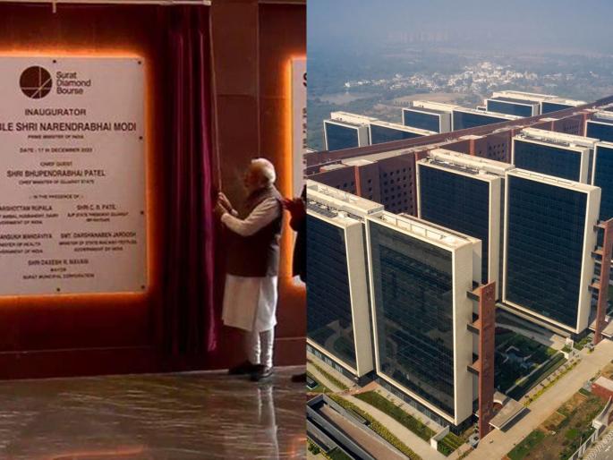 1 / 10पंतप्रधान नरेंद्र मोदींच्याहस्ते आज रविवारी जगातील सर्वात मोठ्या कॉर्पोरेट ऑफिस हब 'सूरत डायमंड बोर्स' चे उद्घाटन करण्यात आले. 2 / 10तब्बल 3400 कोटी रुपये खर्च करून 35.54 एकर जमिनीवर बांधलेले सूरत डायमंड बोर्स (SDB) खडबडीत आणि पॉलिश्ड हिऱ्यांच्या व्यापारासाठी जागतिक केंद्र बनणार आहे3 / 10पंतप्रधान नरेंद्र मोदी आज होम ग्राऊंडवर असून सुरतमधील नवीन विमानतळ इमारतीचे उद्घाटनही मोदींच्याहस्ते झाले. त्यानंतर, त्यांचा रोड शो काढण्यात आलाह होता.4 / 10मोदींनी उद्घाटन केलेल्या सुरत विमानतळावरील टर्मिनससाठी १६० कोटी रुपये खर्च आला आहे. तर, सुरत विमानतळास केंद्र सरकारने आंतरराष्ट्रीय विमानतळाचा दर्जाही दिला आहे. 5 / 10डायमंड बोर्स ही जगातील सर्वात मोठी इंटरकनेक्टेड इमारत आहे. कारण, या इमारतीमध्ये 4,500 हून अधिक इंटरकनेक्टेड कार्यालये आहेत. कार्यालयाची इमारत पेंटागॉनपेक्षा मोठी आहे आणि देशातील सर्वात मोठे कस्टम क्लिअरन्स हाऊस आहे. 6 / 10या इमारतीत 175 देशांतील 4,200 व्यापारी सामावून घेण्याची क्षमता आहे, जे पॉलिश्ड हिरे खरेदी करण्यासाठी सुरतमध्ये येतील. या व्यापार सुविधेमुळे अंदाजे 1.5 लाख लोकांना रोजगार मिळेल. 7 / 10जगाच्या कानाकोपऱ्यातील हिरे खरेदीदारांना सुरतमध्ये व्यवसाय करण्यासाठी जागतिक व्यासपीठ मिळेल. उद्घाटनापूर्वीच मुंबईतील अनेक हिरे व्यापाऱ्यांनी आपल्या कार्यालयांचा ताबा घेतला आहे. 8 / 10या व्यापारांना लिलावानंतर व्यवस्थापनाने हे वाटप केले होते. तसेच, सूरत डायमंड बोर्सच्या उद्घाटनानंतर पंतप्रधान नरेंद्र मोदी याठिकाणी आयोजित कार्यक्रमाला संबोधित केले. 9 / 10सुरत डायमंड बोर्सने आता पेंटागॉनला मागे टाकून गेल्या 80 वर्षांपासून जगातील सर्वात मोठी कार्यालय इमारत बनवली आहे. तसेच, सुरत डायमंड बोर्स सूरतच्या हिरे उद्योगाची गतिशीलता आणि वाढ दर्शवते. हा देखील भारताच्या उद्योजकतेचा पुरावा आहे, असे मोदींनी यापूर्वीच म्हटले होते. 10 / 10सुरतमधील हा व्यापार, नावीन्य आणि सहकार्याचे केंद्र म्हणून काम करेल. याशिवाय आपल्या अर्थव्यवस्थेला चालना देईल आणि रोजगाराच्या संधी निर्माण करेल, असेही मोदींनी म्हटले होते.