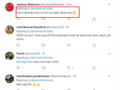 आनंद महिंद्राच्या ट्विटवर अनेकांनी कमेंट केल्या आहेत, त्यात हे वाक्य प्रेरणादायी असल्याचं म्हटलं. तर, एकाने कमेंट करुन आता, प्रग्यानंदला कोणती कार देणार?, असा प्रश्न विचारला आहे.