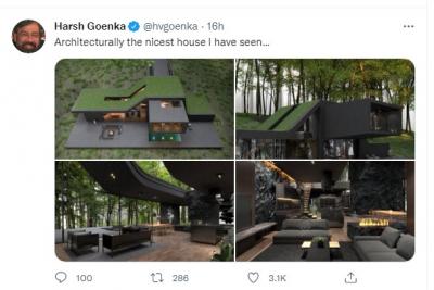 उद्योजक हर्ष गोएंका यांनी ह्या बंगल्याचे फोटो ट्विट करुन मी पाहिलेला सर्वात सुंदर बंगला असल्याचं म्हटलं आहे.