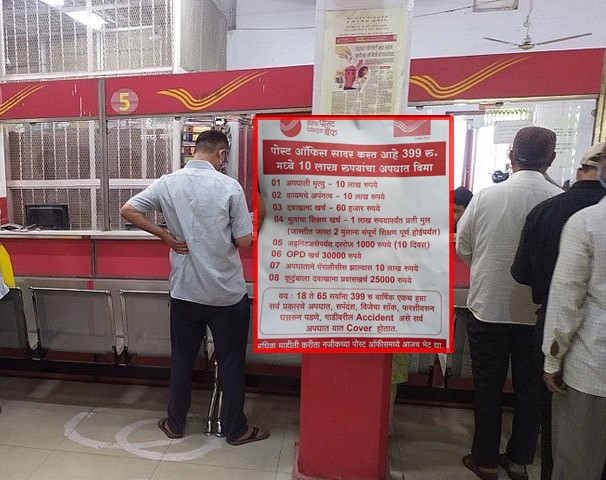 1 / 9भारतीय डाक विभागाच्या एका योजनेनुसार अवघ्या 299 आणि 399 च्या वार्षिक हप्त्यामध्ये (Yearly installments) विमाधारकास (Policy Holder) 10 लाख रुपयांपर्यंत विमा संरक्षण मिळणार आहे. 2 / 9भारतीय टपाल खाते (Indian Post Office) आणि टाटा एआयजी विमा कंपनीने (Tata AIG Insurance Company) विमा क्षेत्रातील योजना आणली आहे. अवघ्या 299 आणि 399 च्या वार्षिक हप्त्यामध्ये (Yearly installments) विमाधारकास (Policy Holder) 10 लाख रुपयांपर्यंत विमा संरक्षण मिळणार आहे.3 / 9टपाल खात्याच्या या अभिनव योजनेचा देशातील गरिब आणि मध्यम वर्गासाठी मोठा फायदा होणार आहे. हा मोठा वर्ग आतापर्यंत स्वस्तातील विमा योजनेच्या प्रतिक्षेत होता. 4 / 9या विमा योजनेला टपाल खात्याची विश्वासहर्यता उपयोगी पडणार आहे. वर्षभरात या योजनेचे विमा संरक्षण विमाधारकाला प्राप्त होईल. ही योजना 18 ते 65 वयांतील व्यक्तींसाठी आहे या योजनेचा फायदा जास्तीत जास्त लोकांना होईल. 5 / 9त्यासाठी, प्रत्येक टपाल कार्यालयातंर्गत (Post Offices) व्यापक प्रचार मोहीम राबविण्यात येणार आहे. ही योजना प्रभावीपणे राबविण्यासाठी टपाल खाते आणि टाटा एआयजी विमा कंपनीत सामंजस्य करार (Tie Up) करण्यात आला आहे. 6 / 9ही योजना प्रत्येक टपाल कार्यालयातंर्गत अटी व शर्तींसह तुम्हाला विमा संरक्षण देईल. योजनेची वैशिष्ट्ये जाणून घेण्यासाठी नजीकच्या पोस्ट कार्यालयात संपर्क साधा. 7 / 9या योजनेत व्यक्तीला अवघ्या 299 किंवा 399 रुपयांच्या हप्तामध्ये एका वर्षात 10 लाख रुपयांपर्यंतचा विमा मिळवू शकते. यामध्ये विमाधारकाचा अपघाती मृत्यू (Accidental Death), अपंगत्व किंवा कायमचे आंशिक अपंगत्व असल्यास 10 लाख रुपयांपर्यंतचे संरक्षण दिले जाईल. 8 / 9याशिवाय या विम्यामध्ये रुग्णालयात दाखल झाल्यास 60 हजार रुपयांपर्यंतचा खर्च आणि रुग्णालयात दाखल न होता घरी उपचार घेतल्यास 30 हजार रुपयांपर्यंतचा दावाही दाखल करता येईल. 9 / 9कोणत्याही कारणाने अपघातात व्यक्तीचा मृत्यू झाल्यास अंतिम संस्कारासाठी 5 हजार रुपये व या विम्यांतर्गत किमान दोन मुलांच्या शिक्षणासाठी 1 लाख रुपयांपर्यतची रक्कम देण्यात येणार आहे.