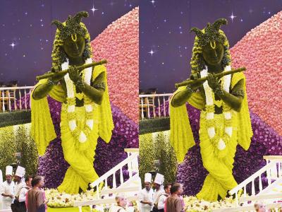 नाच रे मोरा अंबानीच्या दारात.... अंबानीपुत्राचं लग्न म्हटल्यावर नथिंग इज इम्पॉसिबल. पाहा फुलांनी सजलेला मोर