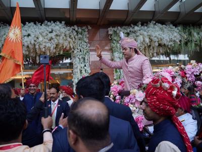 आकाश यांच्या लग्नाची वरात जिओ वर्ल्ड सेंटर येथे पोहोचेल, त्यानंतर येथेच हा लक्षणीय विवाहसोहळा संपन्न होत आहे. लग्नसोहळ्यातील संगीत अन् सजावटीची वेगळीच चर्चा रंगली आहे.