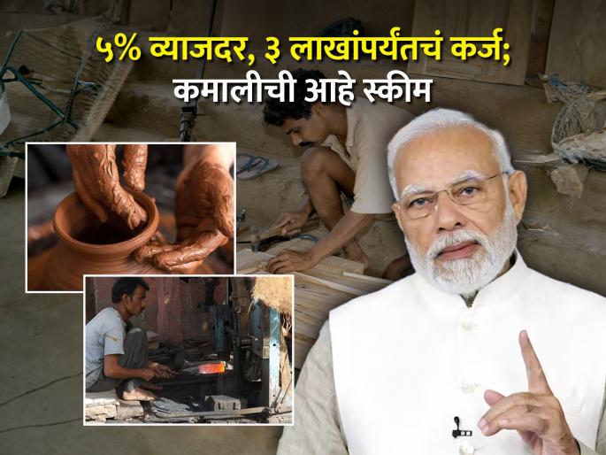 1 / 7PM Vishwakarma Yojana: लोकसभा निवडणुकीच्या तारखा जाहीर करण्यात आल्या आहेत. जून महिन्यात पंतप्रधान नरेंद्र मोदी यांचा दुसरा कार्यकाळ संपुष्टात येईल. मोदी सरकारनं दुसऱ्या कार्यकाळात अशा अनेक योजना सुरू केल्या ज्यांचा गरीब वर्गाला फायदा होत आहे. 2 / 7मोदी सरकारची यापैकीच एक योजना म्हणजे पीएम विश्वकर्मा योजना. १७ सप्टेंबर २०२३ रोजी पीएम विश्वकर्मा योजनेची सुरुवात करण्यात आली. ज्याचा उद्देश हात आणि अवजारांचा वापर करून काम करणाऱ्या कारागिर आणि शिल्पकारांना मदत मिळवून देणं हा होता.3 / 7या योजनेअंतर्गत १८ व्यवसायांची ओळख पटवण्यात आली आहे. यामध्ये सुतार, होडी बनविणारे, लोहार, घिसाडी, टोपली, चटई, झाडू बनविणारे, काथ्या विणकर, बाहुल्या व खेळणी बनविणारे पारंपरिक कारागीर, सोनार, कुंभार, चांभार, हातोडा व टूलकिट बनविणारे, कुलूप-किल्ली बनविणारे, मूर्तिकार, पाथरवट, दगडफोडे, गवंडी, केस कापणारे, फुलांचे हार बनविणारे, धोबी, शिंपी व मासे पकडण्याचे जाळे विणणारे कारागीर लाभार्थी असणार आहेत.4 / 7पारंपरिक कारागिरांच्या उत्पादनांची गुणवत्ता, व्याप्ती आणि पोहोच सुधारणे आणि त्यांच्या सूक्ष्म, लघु आणि मध्यम उद्योगांना स्थानिक व जागतिक बाजारपेठ मिळवून देऊन त्यांचे मूल्यसाखळीतील एकत्रिकरण करणे हे या योजनेचं उद्दिष्ट आहे. ही योजना संपूर्णपणे भारत सरकार अर्थसहाय्यित आहे. 5 / 7प्रारंभी १८ पारंपरिक व्यवसायांचा या योजनेत समावेश करण्यात आला आहे. यामध्ये पारंपरिक कारागिरांना मूलभूत व अद्ययावत प्रशिक्षण दिले जाईल. ही योजना पात्र लाभार्थींना प्रधानमंत्री विश्वकर्मा प्रमाणपत्र आणि ओळखपत्र, टूलकिट प्रोत्साहन, कौशल्य विकास प्रशिक्षण भत्ता यासह सवलतीचे आणि तारणमुक्त कर्ज, डिजीटल व्यवहारांसाठी प्रोत्साहन आणि विपणन सहाय्य करेल. या योजनेचा कालावधी पाच वर्षे राहील.6 / 7‘पीएम विश्वकर्मा’ योजनेअंतर्गत राज्यातील १८ प्रकारच्या पारंपरिक कारागिरांना बँकेतून विनातारण अर्थसहाय्य मिळणार आहे. लाभार्थीला कर्जाच्या पहिल्या हप्त्यात दीड वर्षासाठी एक लाख रूपये तर दुसऱ्या हप्त्यात ३० महिन्यांसाठी २ लाख रूपयांपर्यंतचे कर्ज दिले जाणार आहे.यासाठी कारागिरांना प्रथम पाच दिवसांचे प्रशिक्षण पूर्ण करावे लागेल. 7 / 7त्यामध्ये प्रशिक्षणार्थीला दररोज ५०० रुपयांची शिष्यवृत्ती मिळणार आहे. प्रशिक्षण पूर्ण केल्यानंतर संबंधित कारागिरास १५ हजार रुपयांपर्यंत साहित्य किंवा तेवढी रक्कम दिली जाणार आहे. एकूणच गरीब, गरजू पारंपरिक कारागीर व पारंपरिक व हस्तकलेला सर्वांगीण आधार देणारी ही योजना आहे.