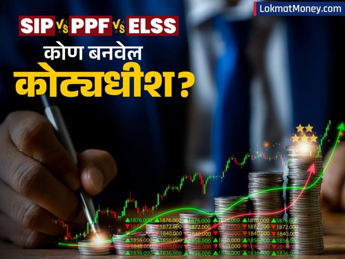 1 / 10SIP Vs PPF Vs ELSS: आजच्या काळात प्रत्येक गुंतवणूकदाराला आपण कोट्यधीश व्हावं अशी इच्छा असते. पण प्रश्न असा आहे की, एसआयपी, पीपीएफ आणि ईएलएसएसमध्ये कोणती स्कीम तुम्हाला कोट्यधीश होण्यास मदत करेल? आपण आज गुंतवणुकीच्या तीन पर्यायांची तुलना करू आणि वार्षिक दीड लाख रुपये गुंतवून आपल्याला किती परतावा मिळेल याचे गणित समजून घेऊ.2 / 10PPF (१५ वर्ष) - समजा तुम्ही पीपीएफमध्ये वर्षाला १.५ लाख रुपये गुंतवले, तर तुमची १५ वर्षांची गुंतवणूक २२.५ लाख रुपये असेल. सध्या यावर सरकार ७.१ टक्के व्याज देत आहे. यानुसार तुम्हाला जवळपास ४०.७ लाख रुपयांचा रिटर्न मिळेल. या स्कीममध्ये तुम्ही २५ वर्षांमध्ये कोट्यधीश बनू शकता.3 / 10SIP (Systematic Investment Plan, १५ वर्षे) - समजा तुम्ही या स्कीममध्ये वर्षाला १.५ लाख रुपयांची गुंतवणूक केली, तर तुम्ही १५ वर्षांमध्ये एकूण २२.५ लाख रुपयांची गुंतवणूक कराल. तज्ज्ञांच्या मते यामध्ये सरासरी १२ टक्के परतावा मिळतो. यानुसार १५ वर्षांमध्ये तुम्हाला ५९.३५ लाख रुपयांचा रिटर्न मिळेल. याद्वारे तुम्ही २० वर्षांमध्ये कोट्यधीश बनू शकता.4 / 10ELSS (Equity Linked Savings Scheme, १५ वर्षे) - समजा तुम्ही या स्कीममध्ये वर्षाला १.५ लाख रुपयांची गुंतवणूक केली, तर तुम्ही १५ वर्षांमध्ये एकूण २२.५ लाख रुपयांची गुंतवणूक कराल. तज्ज्ञांच्या मते यामध्ये सरासरी १४ टक्के परतावा मिळतो. यानुसार १५ वर्षांमध्ये तुम्हाला ६६.९२ लाख रुपयांचा रिटर्न मिळेल. याद्वारे तुम्ही जवळपास १८ वर्षांमध्ये कोट्यधीश बनू शकता.5 / 10PPF (३० वर्ष) - समजा तुम्ही या स्कीममध्ये वर्षाला १.५ लाख रुपयांची गुंतवणूक केली, तर तुम्ही ३० वर्षांमध्ये एकूण ४५ लाख रुपयांची गुंतवणूक कराल. यामध्ये सध्या ७.१ टक्के परतावा मिळत आहे. यानुसार ३० वर्षांमध्ये तुम्हाला १.५४ कोटी रुपयांचा रिटर्न मिळेल.6 / 10SIP (Systematic Investment Plan, ३० वर्ष) - समजा तुम्ही या स्कीममध्ये वर्षाला १.५ लाख रुपयांची गुंतवणूक केली, तर तुम्ही ३० वर्षांमध्ये एकूण ४५ लाख रुपयांची गुंतवणूक कराल. तज्ज्ञांच्या मते यामध्ये सरासरी १२ टक्के परतावा मिळतो. यानुसार ३० वर्षांमध्ये तुम्हाला ५.२७ कोटी रुपयांचा रिटर्न मिळेल. 7 / 10ELSS (Equity Linked Savings Scheme, ३० वर्षे) - समजा तुम्ही या स्कीममध्ये वर्षाला १.५ लाख रुपयांची गुंतवणूक केली, तर तुम्ही ३० वर्षांमध्ये एकूण ४५ लाख रुपयांची गुंतवणूक कराल. यामध्ये सरासरी १४ टक्के परतावा मिळतो. यानुसार ३० वर्षांमध्ये तुम्हाला ८.११ कोटी रुपयांचा रिटर्न मिळेल. 8 / 10पीपीएफ हा सर्वात सुरक्षित पर्याय आहे. परंतु त्यात तुम्हाला मिळणारा रिटर्न मर्यादित आहे. तर अधिक रिटर्नसाठी एसआयपी हा एक उत्तम पर्याय आहे. तर दुसरीकडे ELSS हा टॅक्स सेव्हिंग सोबतच पैशांची जलद वाढ करणारा एक पर्याय आहे.9 / 10तुमच्या गुंतवणुकीची निवड ही तुमचं ध्येय आ