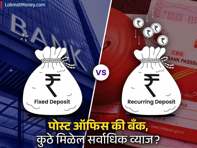 1 / 8Bank FD Vs. Post Office RD: जर तुम्हाला तुमचे पैसे पूर्णपणे सुरक्षित ठिकाणी गुंतवून कायमचे जोखीममुक्त करून हमी परतावा मिळवायचा असेल, तर योग्य गुंतवणूक निवडणं महत्त्वाचं आहे. लोक अनेकदा गोंधळलेले असतात की ५ वर्षांसाठी कोणत्या योजनेत गुंतवणूक करावी - बँकेची फिक्स्ड डिपॉझिट (FD) की पोस्ट ऑफिसची रिकरिंग डिपॉझिट (RD). तर, कॅलक्युलेशन करून, आपल्याला समजेल की ५ वर्षांच्या कालावधीसाठी कोणती योजना अधिक फायदेशीर आहे?2 / 8दोन्ही योजनांमध्ये गुंतवणूक करण्याचे स्वतःचे फायदे असले तरी ते गुंतवणूक करण्यापूर्वी समजून घेतले पाहिजेत. पोस्ट ऑफिस रिकरिंग डिपॉझिट (RD): चालू तिमाहीत, तुम्हाला यावर सुमारे ६.७% वार्षिक व्याज (त्रैमासिक चक्रवाढ) मिळू शकते.3 / 8बँक फिक्स्ड डिपॉझिट (FD): बँका त्यांच्या ५ वर्षांच्या FD वर साधारणपणे ६.५०% ते ७.००% व्याज देत असतात. FD वर किती परतावा द्यायचा हे बँकेनंच ठरवायचं असते. यावरून हे स्पष्ट होतं की तुम्हाला बँक FD पेक्षा पोस्ट ऑफिस FD वर चांगलं व्याज मिळू शकतं.4 / 8₹१ लाख गुंतवल्यावर ५ वर्षांनी तुम्हाला किती पैसे मिळतील? तर एका उदाहरणानं समजून घेऊया की जर तुम्ही ₹१ लाख गुंतवले तर ५ वर्षांनी तुमच्याकडे किती पैसे असतील.5 / 8यामध्ये तुमच्या गुंतवणूकीची रक्कम ₹१,००,००० असेल. यावर ७.५% वार्षिक (त्रैमासिक चक्रवाढ) व्याज दिलं जातं. तुमच्या गुंतवणुकीचा कालावधी ५ वर्षे असेल. या योजनेत, व्याज तिमाही चक्रवाढ पद्धतीनं मोजलं जातं. परंतु व्याजाची रक्कम दरवर्षी दिली जाते. ५ वर्षांनंतर, तुमची ₹१,००,००० ची रक्कम सुमारे ₹१,४५,३२० पर्यंत वाढू शकते, म्हणजेच तुम्हाला सुमारे ₹४५,३२० चा नफा मिळू शकतो.6 / 8आरडीमध्ये महिन्याला समजा ₹१,५०० ची गुंतवणूक करत असाल. यावर तुम्हाला ६.७% वार्षिक (त्रैमासिक चक्रवाढ) व्याज दिलं जाईल. यात तुमचा गुंतवणूक कालावधी ५ वर्षे असेल. ५ वर्षांमध्ये तुमची एकूण गुंतवणूक (₹१,५०० x ६० महिने) सुमारे ₹९०,००० असेल. यावर तुम्हाला एकूण व्याज सुमारे ₹१७,९९८ असू शकतं. अशा प्रकारे, ५ वर्षांनंतर तुम्हाला परिपक्वतेवर एकूण ₹१,०७,९९८ मिळू शकतात. आरडीमध्ये एकरकमी गुंतवणूक केली जात नाही, तर दरमहा एक निश्चित रक्कम जमा केली जाते. म्हणून, तुलना करण्यासाठी आरडीचं गणित वेगळं आहे.7 / 8ज्यांच्याकडे एकरकमी रक्कम आहे त्यांच्यासाठी एफडी चांगली ठरू शकते. मुळात, तुम्ही संपूर्ण रक्कम एकाच वेळी जमा करता. याचा लॉक-इन कालावधी ५ वर्षांचा आहे, परंतु ६ महिन्यांनंतर मुदतपूर्व पैसे काढण्याची सुविधा आहे (परंतु, यामध्ये व्याजदर कमी-अधिक असू शकतो).8 / 8RD नोकरी करणाऱ्यांसाठी किंवा दरमहा कमाई करणाऱ्यांसाठी, ज्यांना लहान बचत करून मोठा निधी मिळवायचा आहे, त्यांच्यासाठी सर्वोत्तम आहे. या दोन्ही योजना सरकारी संरक्षणाच्या कक्षेत ये