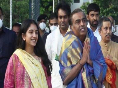 हा फोटो काही दिवसापूर्वीचा आहे. राधिका मर्चंट या भावी सासरे मुकेश अंबानींसोबत तिरुपती बालाजीला गेले होते.