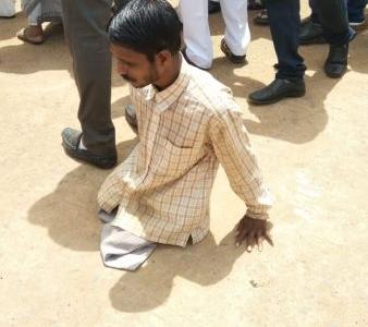 राहुल गांधी व हेलिकॉप्टर पहाण्यासाठी उत्सुकतेने जाणारा दिव्यांग नागरिक.