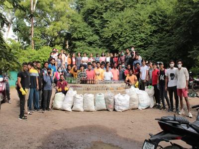 बागेतील लॉन व झाडाझुडुपाखाली विविध ब्रॅण्डच्या दारूच्या ३०३ रिकाम्या बॉटल आणि १२ गोण्या भरतील एवढा तब्बल १५० किलो प्लास्टीक कचरा जमा झाला. तो मनपाच्या कचरा वेचक कंपनीत जमा करण्यात आला.