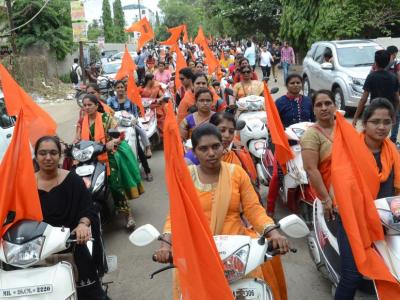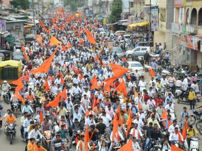 ९ ऑगस्ट रोजी मुंबईत काढण्यात येणा-या मराठा क्रांती मूकमोर्चाच्या पार्श्वभूमीवर शहरात मंगळवारी जनजागृतीच्या उद्देशाने काढण्यात आलेल्या दुचाकी रॅलीत मराठा समाज बांधव नवचैतन्य आणि नव उत्साहाने सहभागी झाले होते.