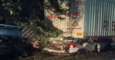 या भीषण रस्ते अपघातात एकाच कुटुंबातील ५ जणांच्या मृत्यूनं हळहळ व्यक्त होत आहे. वेगानं आलेल्या कारनं हायवेवर उभ्या असणाऱ्या कंटेनरला धडक दिली. ही धडक इतकी जबरदस्त होती ज्यामुळे कार पूर्णत: कंटेनरमध्ये घुसली. या दुर्घटनेत पती-पत्नी, आई-मुलीचा जागेवरच मृत्यू झाला. तर जखमी मुलाला हॉस्पिटलमध्ये नेताना त्याने वाटेतच जीव सोडला.