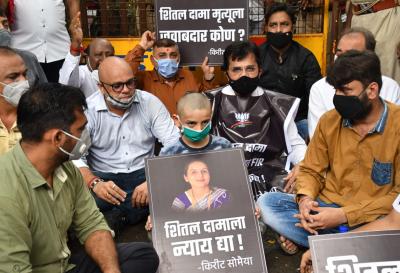या आंदोलनात सोमय्या यांच्यासोबत शितल दामा यांचे कुटुंबीय देखील सहभागी झाले होते. दुपारच्या वेळेस घाटकोपर पोलीस ठाण्याच्या समोर सोमय्या बराच वेळ आंदोलन करत होते.