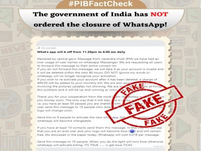 प्रेस इंडिया ब्युरोनं ट्विट करून व्हॉट्स ऍपबद्दलचे मेसेज खोटे आणि दिशाभूल करणारे असल्याचं सांगितलं आहे. सरकारनं व्हॉट्स ऍपसाठी कोणताही आदेश काढला नसल्याचं पीआयबीनं स्पष्ट केलं आहे.