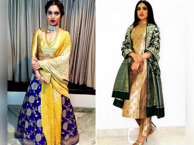 बनारसी स्टाईल सूट आणि लहंग्यामधील भूमीचा ट्रॅडिशनल लूक खूपच सुंदर आहे.