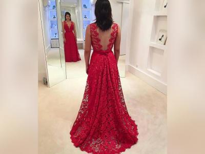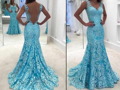 स्काय ब्लू लेस फॅब्रिक विद बॅकलेस गाऊन