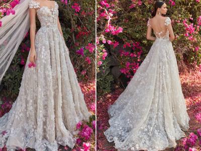 बटरफ्लाय पॅच वर्क विद ऑफ शोल्डर बॅकनेक गाऊन डिझाईन