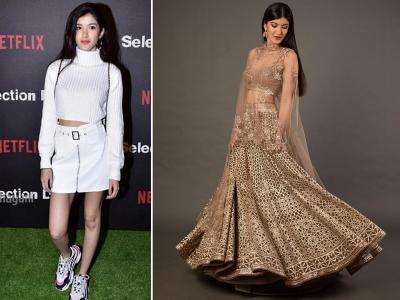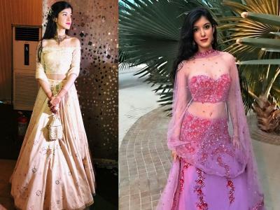 इंडियन ट्रडिशनल वेअरमध्ये शनाया एखाद्या राजकन्येप्रमाणेच दिसते. कॉरसेट डिजाइन केलेल्या ब्लाउजसोबत पिंक कलरचा लेहेंगा असो किंवा ऑफ शोल्डर ब्लाउजसोबत वेअर केलेला क्रिम कलरचा लेहेंगा. दोन्ही लूकमध्ये ती खुप गोड दिसत होती.