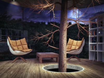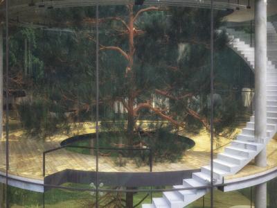 ‘ट्री इन द हाऊस’ नावाचे हे घर म्हणजे एका झाडाभोवती दंडगोलाकार काचेची वास्तू आहे.