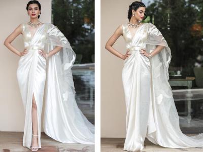 प्रियांका, दीपिका आणि कंगनाव्यतिरिक्त बॉलिवूड अभिनेत्री डायना पेंटीही कान्सच्या रेड कार्पेटवर दिसून आली. दुसऱ्या दिवशीच्या लूकसाठी डायनाने ऑफ व्हाइट कलरची सिल्क साडी वेअर केली होती. डायनाने ही सिल्कची साडी बेल्टेड स्टाइलमध्ये साडी गाउनप्रमाणे वेअर केली होती. डायना या लूकमध्ये फार सुंदर दिसत होती.