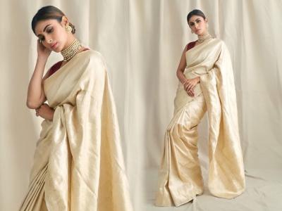 व्हाईट गोल्ड प्लेन साडी लूक