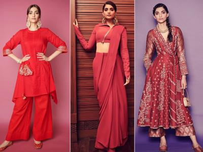 फेस्टिव्ह सीझनमध्ये सुंदर दिसण्यासाठी सेलिब्रिटींकडून घ्या टिप्स; ट्राय करा रेड ट्रेडिशनल लूक्स