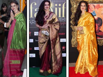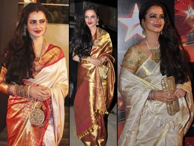 Navratri 2018 : नवरात्रीमध्ये दुर्गापुजेसाठी ट्राय करा रेखाप्रमाणे कांजीवरम साड्यांचा लूक!