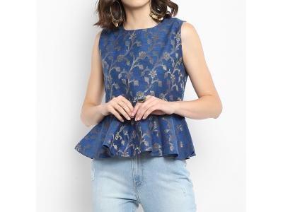 पावडर ब्ल्यू कलरचा बटन असलेल्या प्रिंटेड पेपलम कुर्त्याची नेक डिझाइन स्प्रेड कॉलर आहे. तुम्हाला हे पेपलम टॉपसारखंही वपरता येऊ शकतं. एखाद्या दिवशी जर तुम्हाला काही वेगळं परिधान करण्याची इच्छा असेल तर तुम्ही हा टॉप कवर वॉश्ड जीन्स किंवा डेनिम पॅन्टसोबत वापरू शकता.