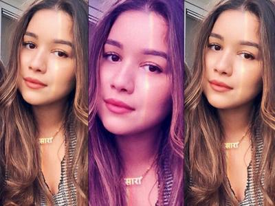 रुपापेक्षा तिच्या गळ्यात दिसणारे सोन्याचे लॉकेट अधिक लक्ष वेधत आहे. 'सारा' असे मराठीत लिहिलेल्या लॉकेटची चर्चा आहे.