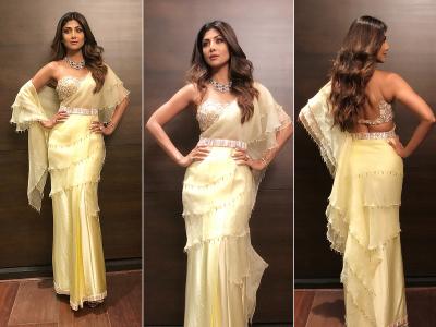 बॉलिवूड अभिनेत्री शिल्पा शेट्टी आपल्या झिरो फिगरप्रमाणेच आपल्या फॅशन स्टाइलसाठीदेखील फॅन्समध्ये नेहमी चर्चेत असते. शिल्पा नेहमी साडीसोबत एक्सपरिमेंट करताना दिसून येते.