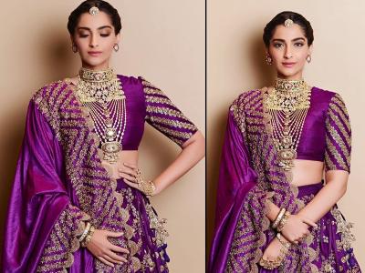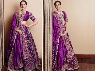 या शोमध्ये सोनम कपूरने पर्पल रंगाचा लेहेंगा परिधान केला होता. या लेहेंग्यामध्ये सोनम फार सुंदर दिसत होती.