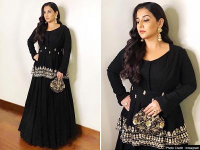 ब्लॅक कलरच्या सूट-सलवारमध्येही विद्या फार डॅशिंग आणि स्टायलिश दिसत आहे.