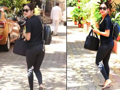 जर तुम्ही शॉर्ट्समध्ये कन्फर्टेबल नसाल तर काही हरकत नाही. मलायका अनेकदा असेही लूक कॅरी करते ज्यामध्ये ती योगा पॅन्ट्स आणि टी-शर्टमध्ये दिसून येते. फोटोमध्ये दिसत असलेला तिचा ऑल ब्लॅक लूक तुम्हीही ट्राय करू शकता.