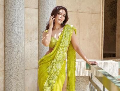 पिवळ्या रंगाच्या साडीत राशी खन्ना फारच सुंदर दिसत आहे.