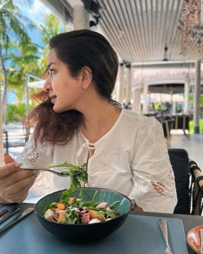 मालदीवच्या शांत वातावरणात टिस्का रमली आहे. शहरात असा अनुभव येत नाही. इथेच राहावं वाटत असल्याची भावना तिने कॅप्शनमधून मांडली आहे.