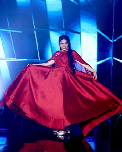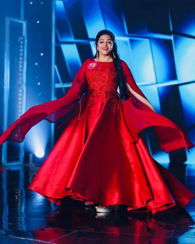 नेहमी साडी आणि वेणीत दिसणारी अश्विनी सुंदर रेड गाऊन मध्ये दिसत आहे.