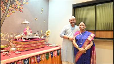 अभिजीत खांडकेकरच्या नाशिकच्या घरी गणपती बाप्पाची प्रतिष्ठापना करण्यात आली आहे.