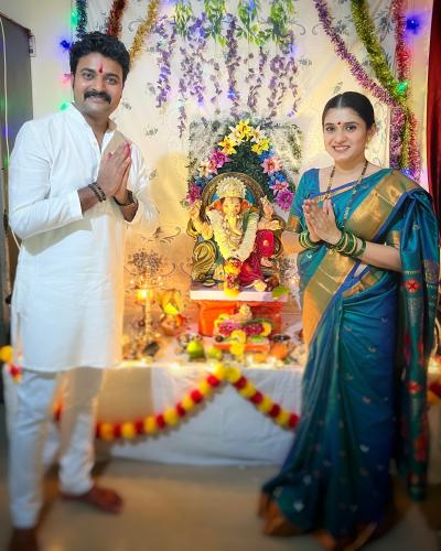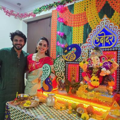 श्रुती मराठे आणि गौरव घाटणेकरने सोशल मीडियावर घरच्या बाप्पाचे फोटो शेअर केले आहेत.