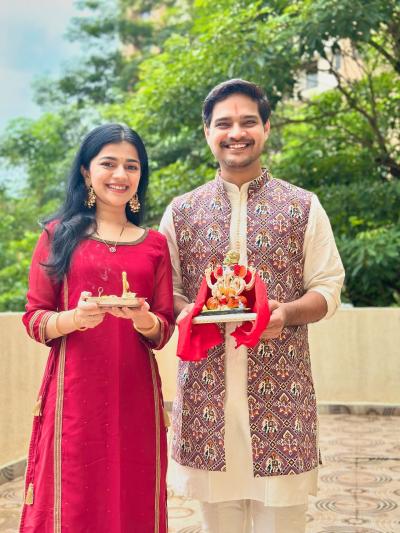 अभिषेक देशमुख आणि कृतिका देवने त्यांच्या घरच्या बाप्पाची झलक दाखवली आणि लिहिले की, आगमन🌺 ह्या वेळेस बाप्पाची मूर्ती शाडूच्या मातीने घरी तयार केली आणि आनंद द्विगुणीत झाला..गणपती बाप्पा मोरया इको फ्रेंडली बाप्पा!!!