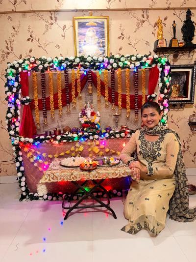 अभिनेत्री अभिज्ञा भावेच्या घरी हनुमानरुपी बाप्पा विराजमान झाले आहेत. त्यांनी सजावट खूप छान केली आहे.