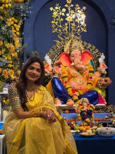 प्रार्थना बेहरेने बाप्पाची झलक शेअर करत लिहिले, गणपती बाप्पा मोरया! मंगलमूर्तीच्या आगमनाने तुमचे घर आनंद, प्रेम आणि समाधानाने भरून जावो. गणेश चतुर्थीच्या शुभेच्छा!