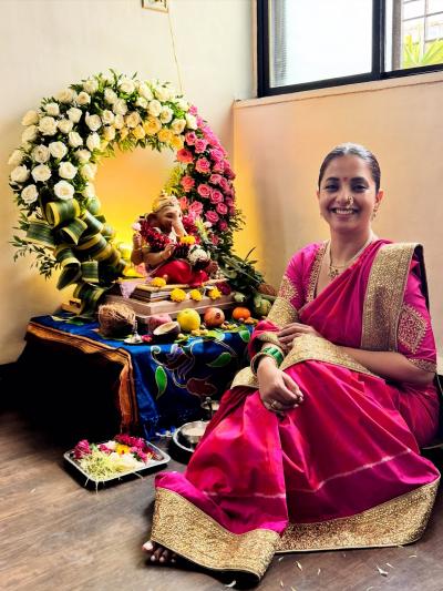 सायली संजीवने तिच्या घरी पारंपारिक पद्धतीने गणपती बाप्पाची प्रतिष्ठापना केली आहे.