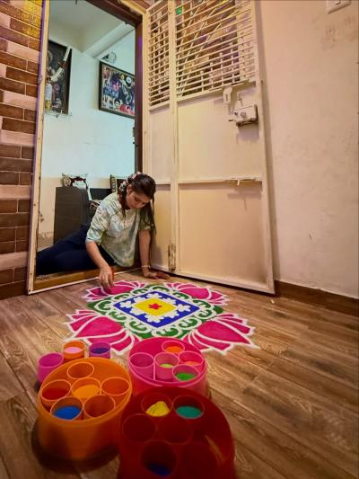 गौतमीने दिवाळीनिमित्त सुंदर रांगोळी काढली.