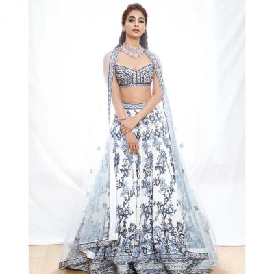 पूजा व्हाइट रंगाच्या लेहंग्यात खूप ग्लॅमरस दिसते आहे.