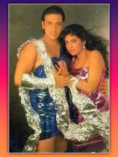 ९०च्या दशकातील सुपरस्टार गोविंदा आणि जुही चावला यांनी हे फोटोशूट केलं होतं. त्यामध्ये दोघांनी आपल्या शरीरावर चमचमता रॅपिंग पेपर लपेटला होता.