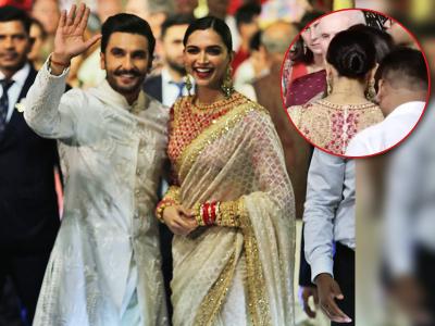 12 डिसेंबरला ईशा अंबानी आणि आनंद पीरामलच्या लग्नात आलेल्या दीपिका पादुकोणच्या मानेवर पु्न्हा एकदा RKचा टॅटू दिसला