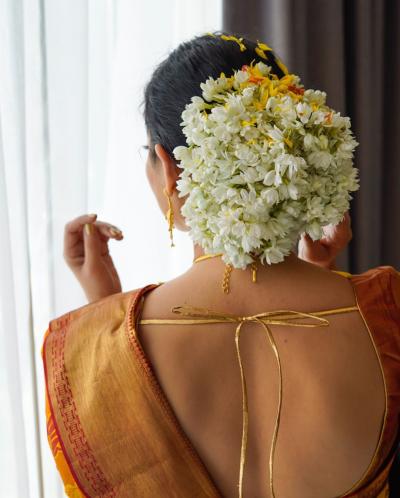 गळ्यांत पारंपरिक दागिने आणि केसांत गजरा माळलेला आहे.