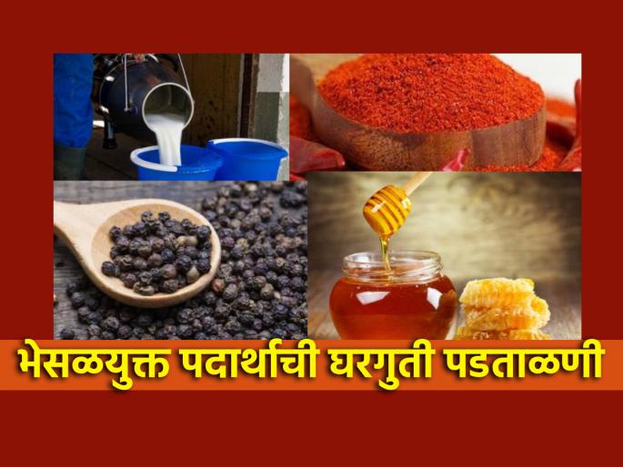 1 / 11त्यासाठीच महत्त्वाची बाब म्हणजे नेहमीच्या दुकानातून माल खरेदी करा, स्वस्त घेण्याच्या नादात कमी गुणवत्तेचा माल खरेदी करू नका. विकत घेत असलेल्या पदार्थावर शासनाची मोहोर आहे की नाही ते तपासून बघा. विकतचा फराळ आणणार असाल तर ओळखीतल्या गृहउद्योगांना प्राधान्य आणि प्रोत्साहन द्या. स्वतः माल खरेदी करणार असाल तर पुढील पदार्थांची चाचणी करा. 2 / 11जिरे तपासण्यासाठी हातात थोडे जिरे घ्या आणि दोन्ही तळहातांमध्ये घासून घ्या. तळहाताचा रंग सुटला तर ते भेसळयुक्त आहे असे समजा! कारण खरे जिरे रंग सोडत नाही. 3 / 11हिंगाचा दर्जा तपासण्यासाठी पाण्यात विरघळवून पहा. द्रावणाचा रंग दुधाळ झाला तर हिंग खरा आहे हे समजून घ्या. दुसरा मार्ग म्हणजे हिंगाचा तुकडा जिभेवर लावा, जर हिंग खरा असेल तर तुम्हाला कडूपणा किंवा तुरटपणा जाणवेल. शिवाय हिंगाचा उग्र वास त्याच्या अस्सलतेचि ओळख आहे. 4 / 11लाल मिरची पावडरमध्ये सर्वाधिक भेसळ केली जाते. ती तपासण्यासाठी मिरची पावडर पाण्यात टाका, जर रंग पाण्यात विरघळला आणि भुसा तरंगू लागला तर मिरची पावडर बनावट आहे असे समजावे. भेसळ नसलेली मिरची पावडर पाण्यात मिसळून पाण्याला लाल रंग येईल. 5 / 11आजकाल अशी बडीशेप आणि कोथिंबीर बाजारात मिळते ज्यावर हिरव्या रंगाचा थर असतो. तो तपासण्यासाठी कोथिंबीरीत आयोडीन मिसळा, रंग काळा झाला तर समजून घ्या की कोथिंबीर बनावट आहे. कोथिंबीर नळाच्या पाण्याने धुवून घेतली आणि रंग निघू लागला तरी त्यातली भेसळ कळून येते. हीच बाब बडीशेपची! बडीशेप पाण्यात टाकल्यावर हलकासा पोपटी रंग येणे स्वाभाविक आहे, पण पूर्ण पाणी हिरवे होत असेल तर ती भेसळयुक्त आहे. 6 / 11काळी मिरी पपईच्या दाण्यांसारखीच दिसते, त्यामुळे कधी कधी भेसळयुक्त काळी मिरीमध्ये पपईच्या बिया खपवल्या जातात. मिरी तपासण्यासाठी ती पाण्यात टाका. काळी मिरी पाण्यावर तरंगत असेल तर ती पपईची बी असेल, काळी मिरी पाण्याच्या तळाशी जाऊन बसेल आणि हाताला टणक लागेल. 7 / 11मधातही मोठ्या प्रमाणात भेसळ असते. मधामध्ये साखर मिसळली जाते, त्याची गुणवत्ता तपासण्यासाठी एका ग्लासमध्ये मधाचे थेंब टाका, जर मध तळाशी स्थिर झाला तर तो खरे आहे असे समजा, तरंगत राहिला तर भेसळयुक्त समजा. 8 / 11तुपातील भेसळ तपासण्यासाठी दोन चमचे हायड्रोक्लोरिक ऍसिड आणि दोन चमचे साखर घेऊन त्यात एक चमचा तूप मिसळा. मिश्रण लाल झाले तर समजून घ्या की तूप भेसळ आहे.9 / 11दुधात पाणी, दूध पावडर आणि रसायनांची भेसळ केली जाते. तपासण्यासाठी, आपले बोट दुधात घाला आणि ते बाहेर काढा. जर दूध बोटाला चिकटले तर समजून घ्या की दूध शुद्ध आहे. दूध चिकटले नाही तर दुधात भेसळ आहे.10 / 11चहाची चाचणी करण्यासाठी, एक पांढरा कागद हलका भिजवा आणि त्यावर चहाचे दाणे पसरवा. कागदावर रंग आला तर समज