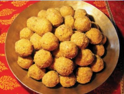 साहित्य : एक वाटी मूग, एक वाटी उडीद, एक वाटी सोयाबीन, एक वाटी हरभऱ्याचे रवाळ पीठ. कृती : थोडी कच्ची डिंक पावडर घेऊन त्यावर गरम साजूक तूप ओता. कढईत आणखी तूप घालून पीठ खमंग भाजा. एक वाटीभर खोबरे भाजून, चुरून घाला. चवीनुसार पिठीसाखर किंवा गूळ मऊ करून लाडू वळून घ्या.