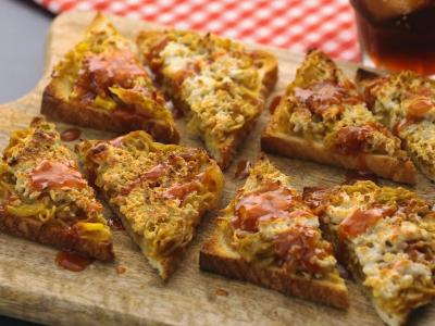 4. मॅगी नूडल्स टोस्ट : मॅगी तयार करताना नेहमी पेक्षा कमीतकमी पाणी घ्यावे. यानंतर एका पॅनमध्ये ब्रेड कुरकुरीत होईपर्यंत भाजावा. त्यावर सॉस लावावा आणि मग त्यावर बनवलेली मॅगी ठेवावी. हवे असल्याच चीजही टाकावे. यानंतर 30 सेकंदांसाठी ओव्हनमध्ये ठेवावा आणि टोस्टचा आस्वाद घ्यावा.
