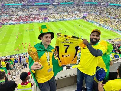 कालच्या सामन्यातील महेंद्रसिंग धोनीच्या चाहत्याने सर्वांचे लक्ष वेधले. चेन्नई सुपर किंग्जने लुसेल स्टेडियममधील धोनीच्या चाहत्याचा फोटो सोशल मीडियावर पोस्ट केला आहे. यामध्ये धोनीचा चाहता ब्राझीलच्या चाहत्यासोबत पोज देताना दिसत आहे. धोनीच्या चाहत्याने यापूर्वी एमएस धोनीला भेटून सेल्फी देखील काढला आहे.
