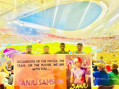 MS Dhoni नंतर कतारमध्ये संजू सॅमसनची हवा! फुटबॉल वर्ल्ड कपमध्ये चाहत्यांनी झळकवले बॅनर